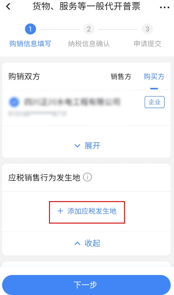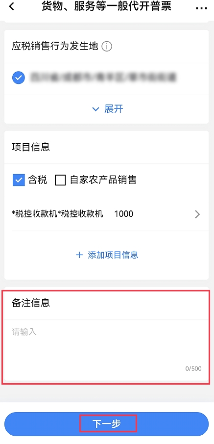 2.6、納稅人可在備注信息欄輸入備注信息,點擊【下一步】。