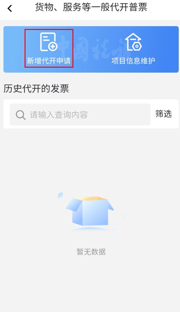 2.2、點擊【貨物、服務(wù)等一般代開】-【新增代開申請】進(jìn)入代開申請頁面。