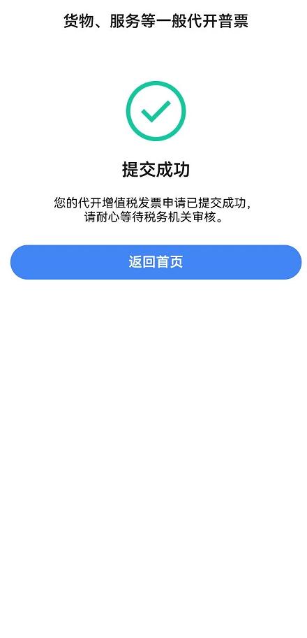代開申請?zhí)峤怀晒?,無需審核,無需繳款,可自動完成數(shù)電票開具;