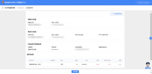 ?第三步,紅字發(fā)票開具。經過購銷雙方確認后的紅字確認單或由銷售方單獨發(fā)起的紅沖,銷售方可在“紅字發(fā)票開具”模塊,開具紅票。