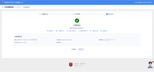 3.點擊頁面下方的“開具發(fā)票”,提示紅字發(fā)票開具成功。