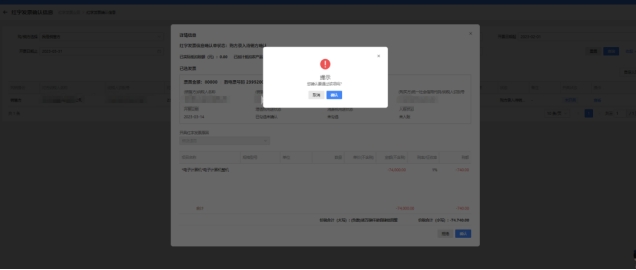 3.信息確認彈窗的右下角提供“拒絕”和“確認”選項。點擊“拒絕”,作廢此紅字發(fā)票信息確認單;點擊“確認”,彈出提示框,再次點擊“確認”,即可完成紅字發(fā)票信息確認單的處理操作。