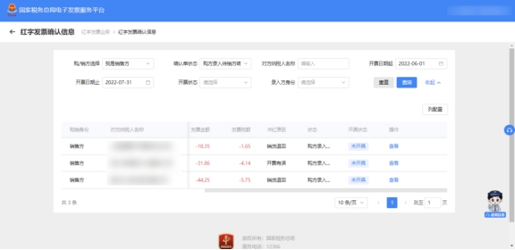 注意:若發(fā)起的紅字發(fā)票信息確認單需要對方進行確認,對方超過72小時未進行操作則該紅字確認單作廢。
