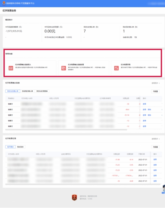 開具數(shù)電票紅字發(fā)票主要分為三個步驟,也就是【常用功能】中顯示的3個功能。