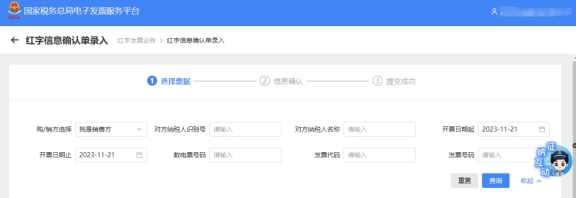 三、紅字發(fā)票開票—紅字發(fā)票確認(rèn)信息錄入。