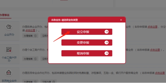 4、點(diǎn)擊---點(diǎn)擊這里。---點(diǎn)擊—設(shè)立申報(bào)