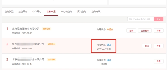 5、目前北京是自助核名,如果查詢不重名,就可以是提交審核名字,提交后,10-30分鐘就會有核名結(jié)果,但名字最終能否使用,最終注冊的時候,還需要工商局窗口人工審核。有可能會駁回使用。
