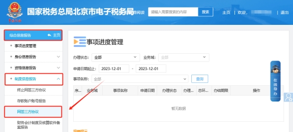 二、綜合信息報告—制度信息報告—網(wǎng)簽三方協(xié)議。