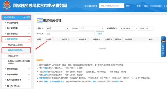 二、綜合信息報告—制度信息報告—存款賬戶賬號報告。