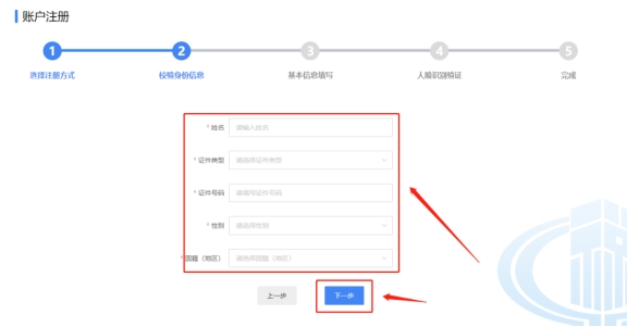 三、在校驗(yàn)身份信息頁(yè)面填寫(xiě)姓名、證件類(lèi)型、證件號(hào)碼、性別、國(guó)籍(地區(qū)), 點(diǎn)擊下一步,拖動(dòng)滑塊驗(yàn)證。