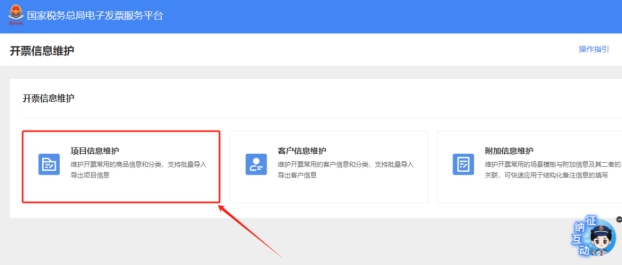 3.點擊“項目名稱”右側(cè)的點狀圖標,會彈出“項目信息查詢”,可在該頁面選擇已維護的項目信息;如需添加新的項目信息 ,則需進入【我要辦稅】—【開票業(yè)務(wù)】—【開票信息維護】—【項目信息維護】模塊進行添加。