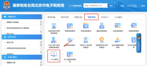 (2)請您點擊【我要查詢】—【一戶式查詢】—【認定管理查詢】—【稅(費)種認定查詢】,查詢條件選成全部查詢。
